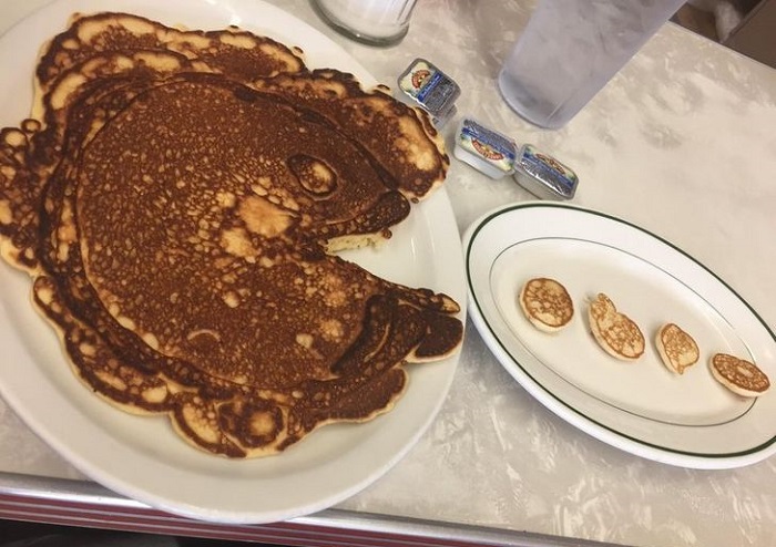 11. A pincérnő észrevette, hogy Pacman-es pólót viselek, ezért így készítették el nekem a palacsintát, amit rendeltem:
