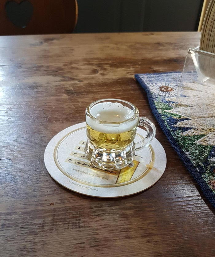 7. Németországban beültünk egy helyre a barátaimmal, és rendeltem egy kis pohár sört. Ezt hozta ki nekem a pincérnő: